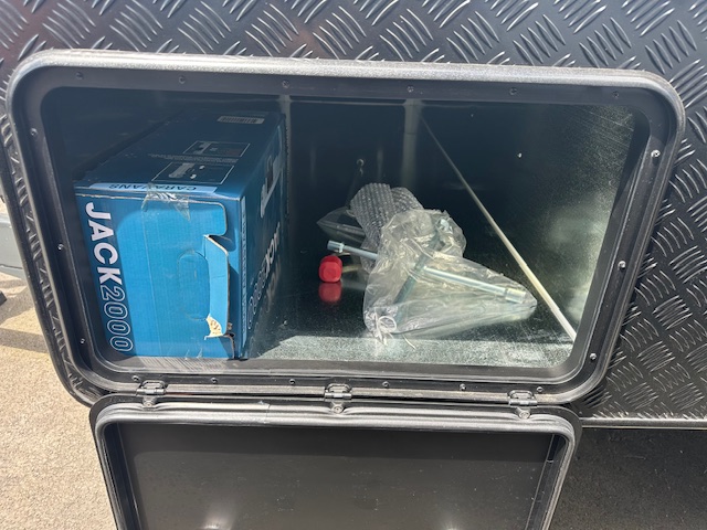 The external of the caravan hosts a large tunnel boot in the front for all your BBQ, annex matting and set up needs. In the rear you have 2 x vertical lockers for storing camping chairs, table and even the golf clubs.