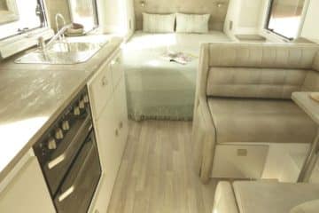 The Traveller caravan features are market-leading including a full composite body construction with on road suspension, light weight with modern functional design.