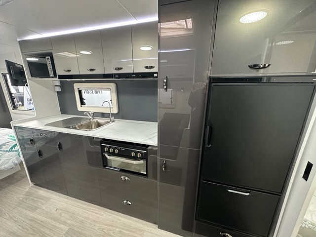 No stone has been left unturned in this fully functional V3 series with Viscount – Have a look at the premium packs available with features including composite sides, upgraded lighting, full padded bed head, foot rests to lounge, dual cupboard colour options, carbon fibre inlay to sides and grey composite panel at rear!