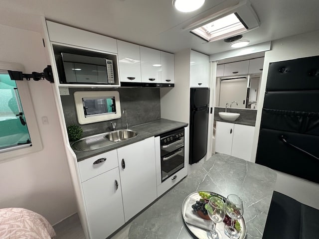 This caravan has a 135watt solar and 100amp battery that is ran through a 25amp Projecta charger. Has a full galvanised tunnel boot to maximise storage space. One 95L and one 64L water tanks on board to provide you with a generous amount of onboard water. This caravan has a reverse camera and in-car kit to give you the ability to see behind you and make backing easier.